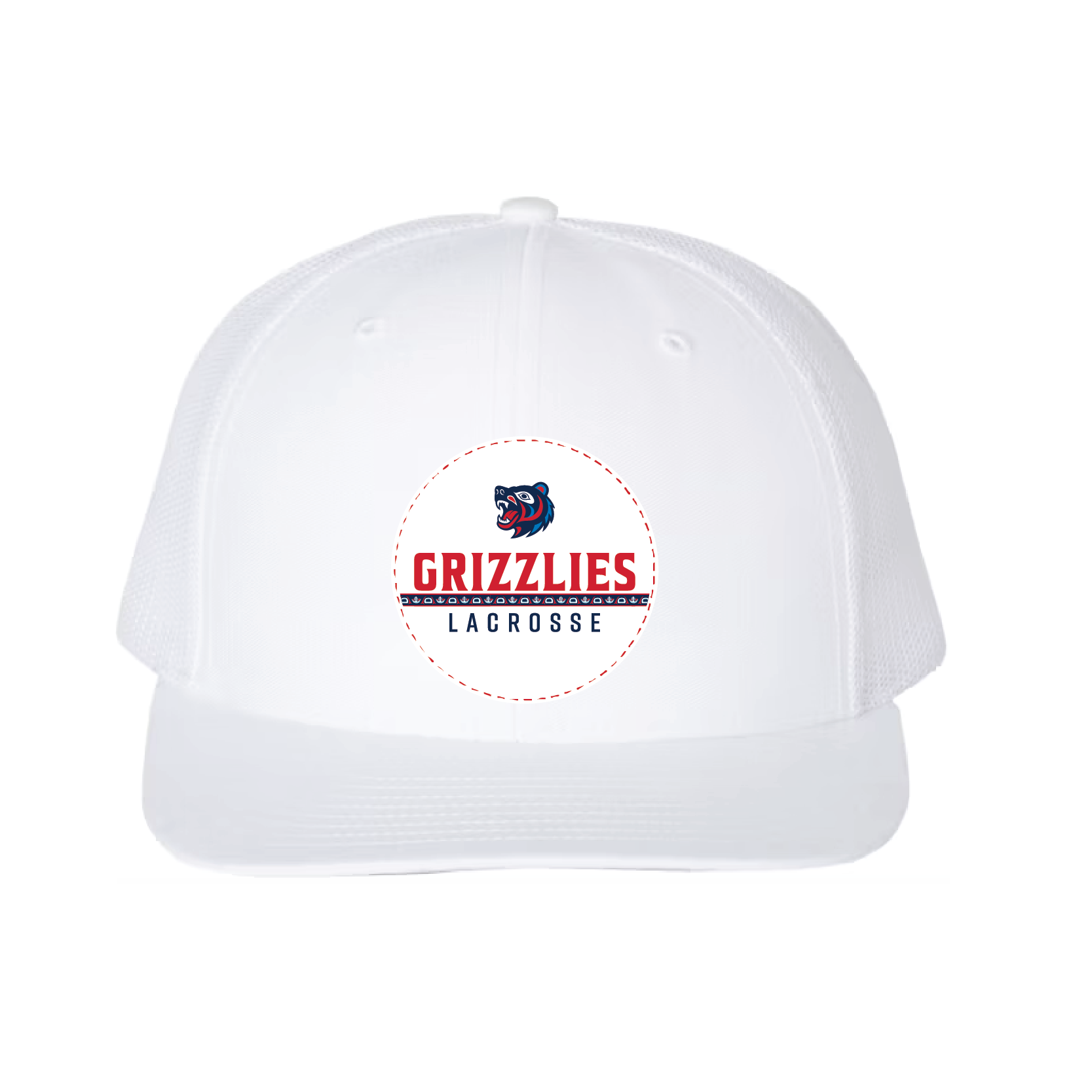 DTF-Mesh Snapback Hat - (White/White)-GRIZZLIES LACROSSE STORE